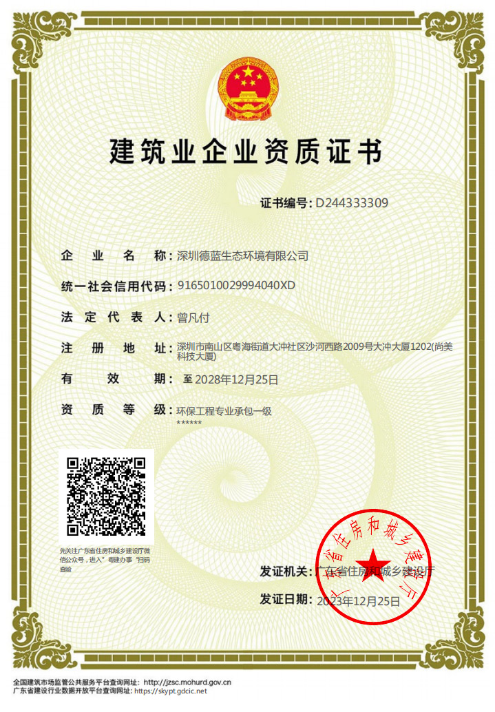 環(huán)保工程專業(yè)承包一級